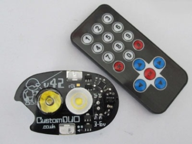 The v42 can be programmed using Customduo infrared remote control (optional). From 1-9 light settings can be specified, and the level of light provided by the spot and/or flood LEDs for each setting can be configured by the user.